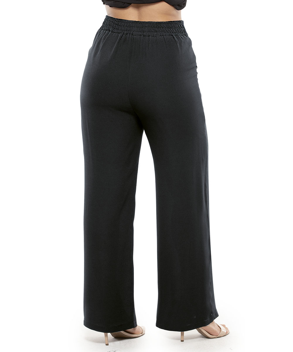 Clássica e elegante, a calça em tecido plano crepe é a escolha perfeita pra curtir uma festa ou várias outras ocasiões com conforto e beleza. Com fechamento frontal e bolsos embutidos, você estará pronta para brilhar.