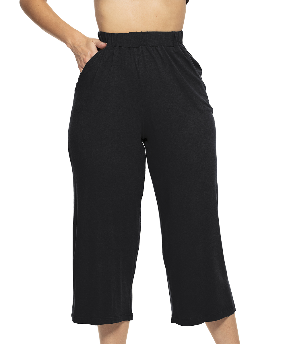 Viscose com elastano. Toque leve e macio. Ótimo caimento e muito conforto