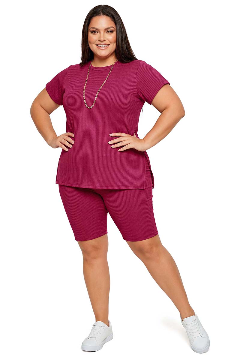 Conjunto 2 peças (Blusa e bermuda em malha canelada)