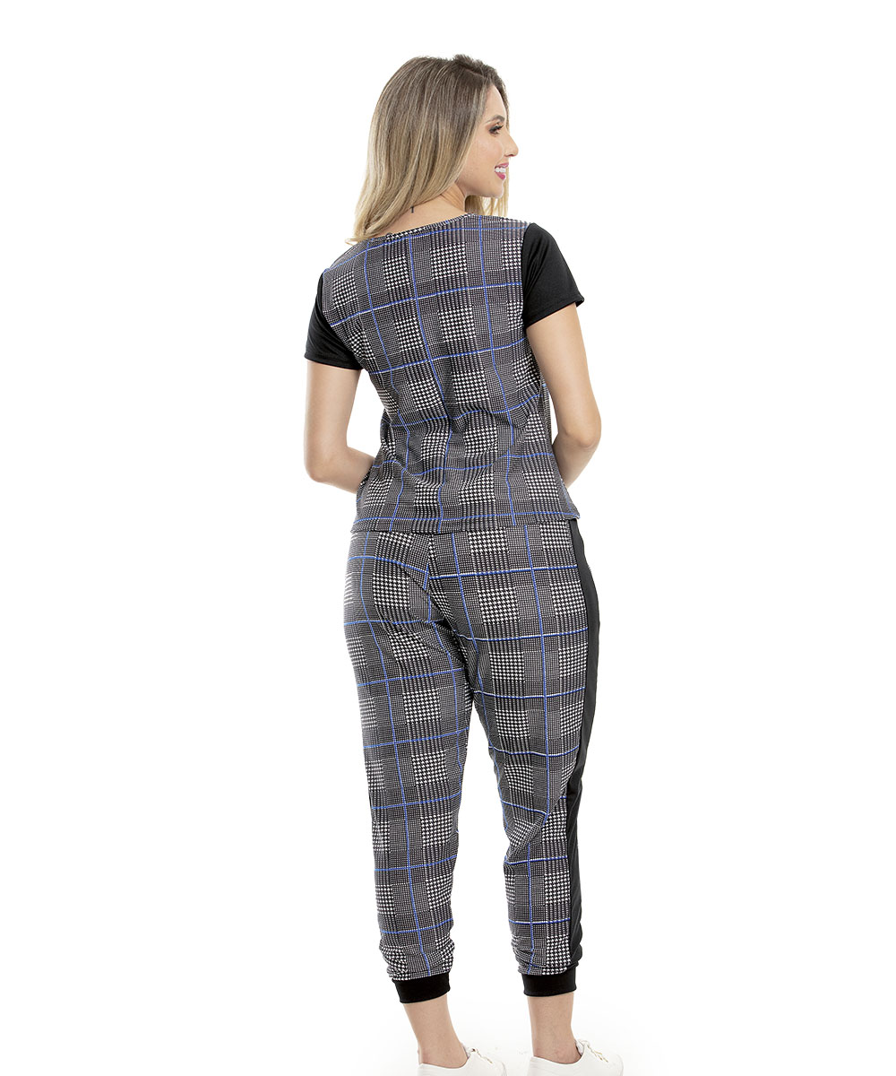 Estilo e conforto em um conjunto irresistível! Nossa blusa com decote redondo e mangas curtas destaca-se com detalhes contrastantes, enquanto a calça jogger apresenta um design moderno com detalhe contrastante lateral e punho na barra. Este conjunto é a escolha perfeita para quem busca um visual descontraído, mas cheio de personalidade.