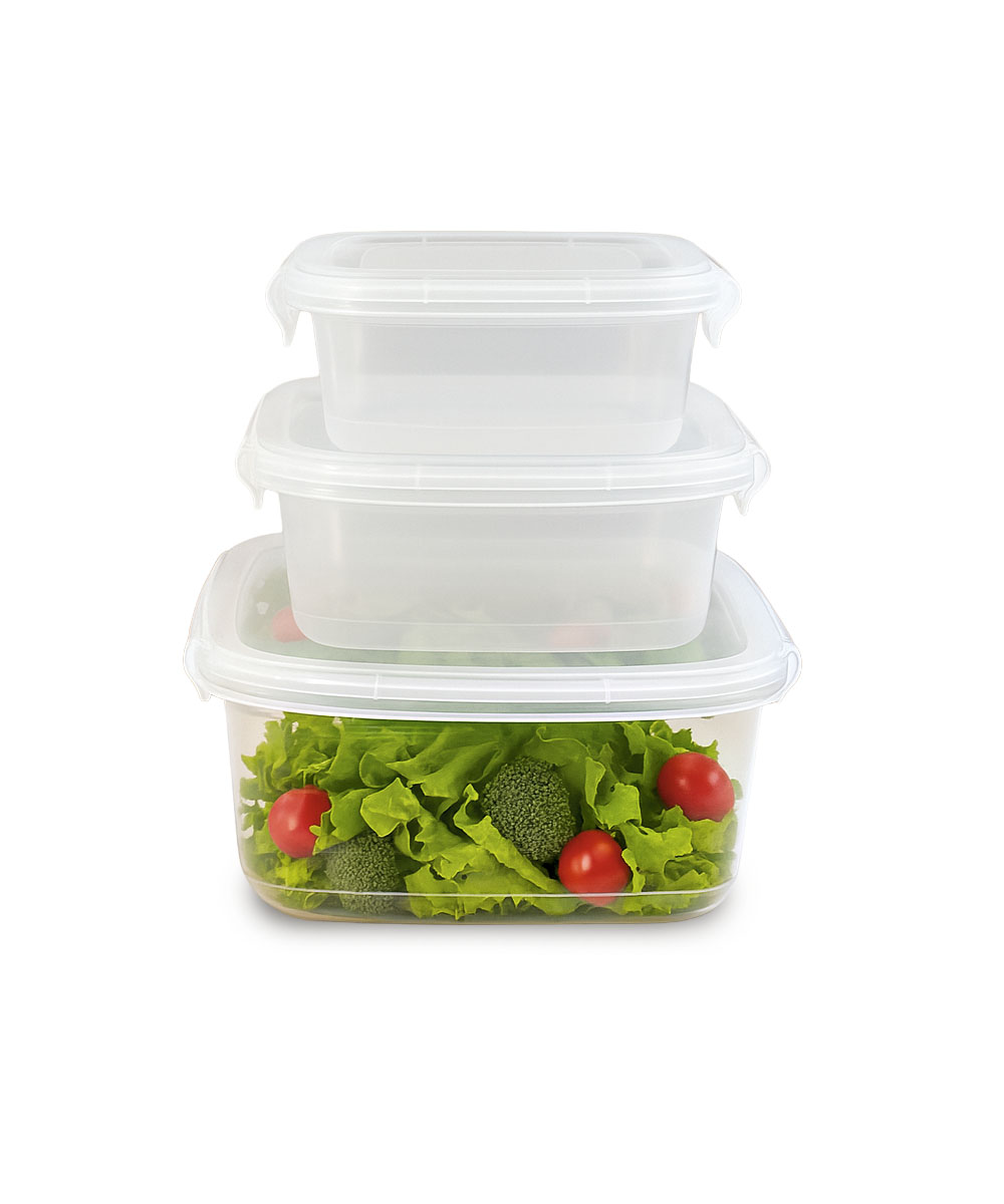 Conjunto 3 potes em plástico tampa com trava