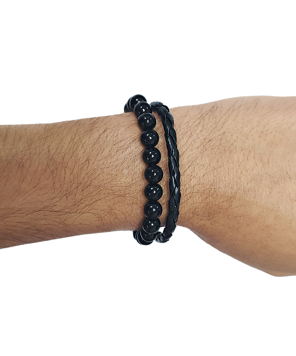 Conjunto com 2 pulseiras Zeus com courino e pedras sintéticas com detalhes