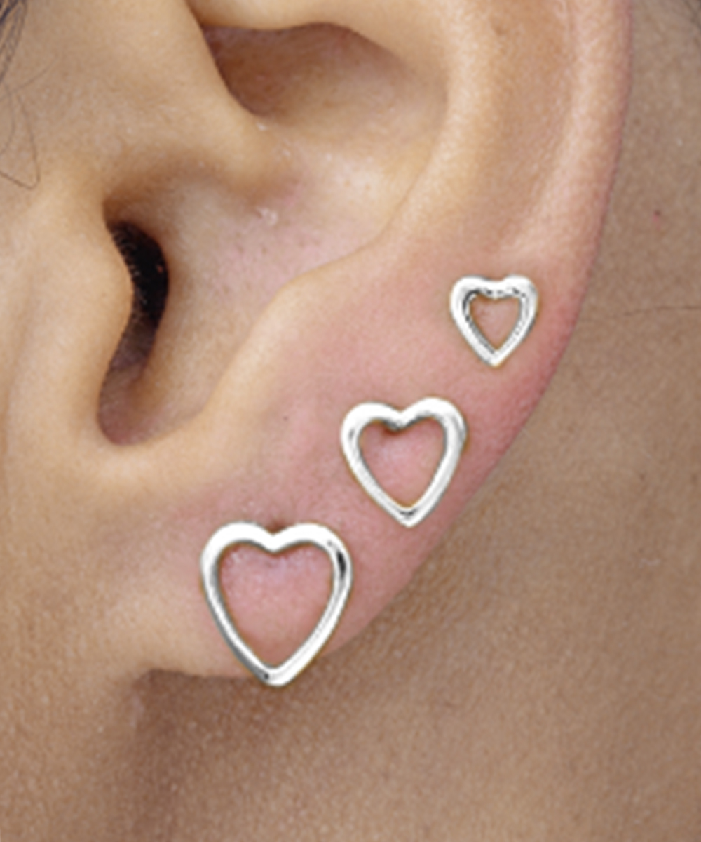 Conjunto com 3 pares de Brincos Corações em aço inox