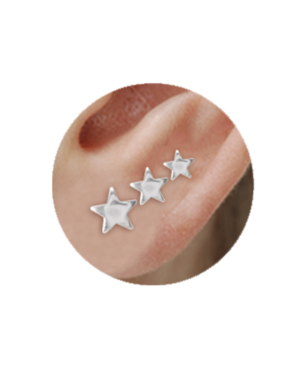 Conjunto com 3 pares de Brincos Estrelas em prata de lei 925