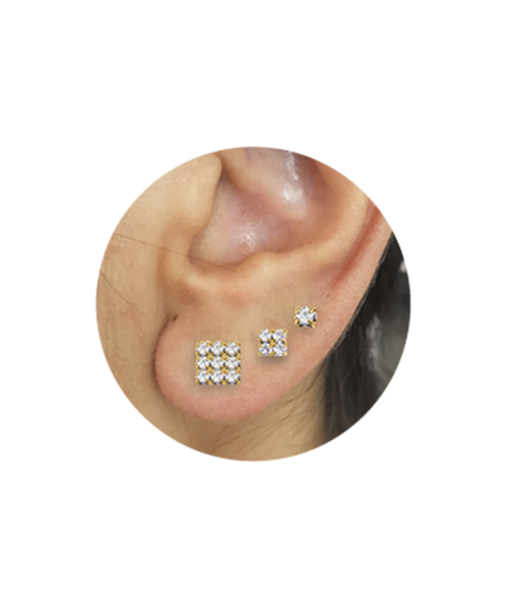 Conjunto com 3 pares de Brincos Iluminado Folheados a ouro com strass