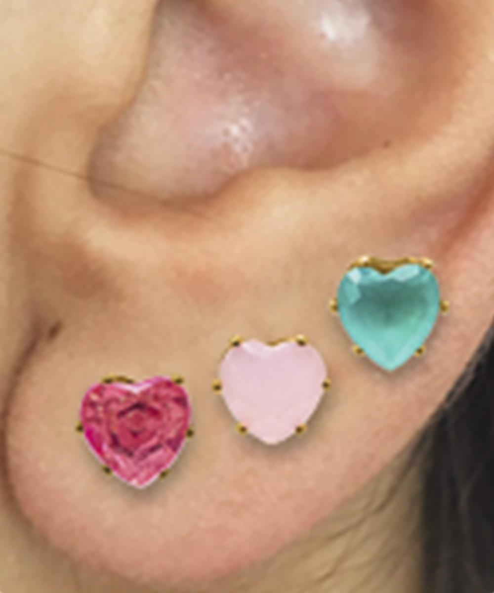 Conjunto com 3 pares de Brincos Vibrações Folheados a ouro com zircônia