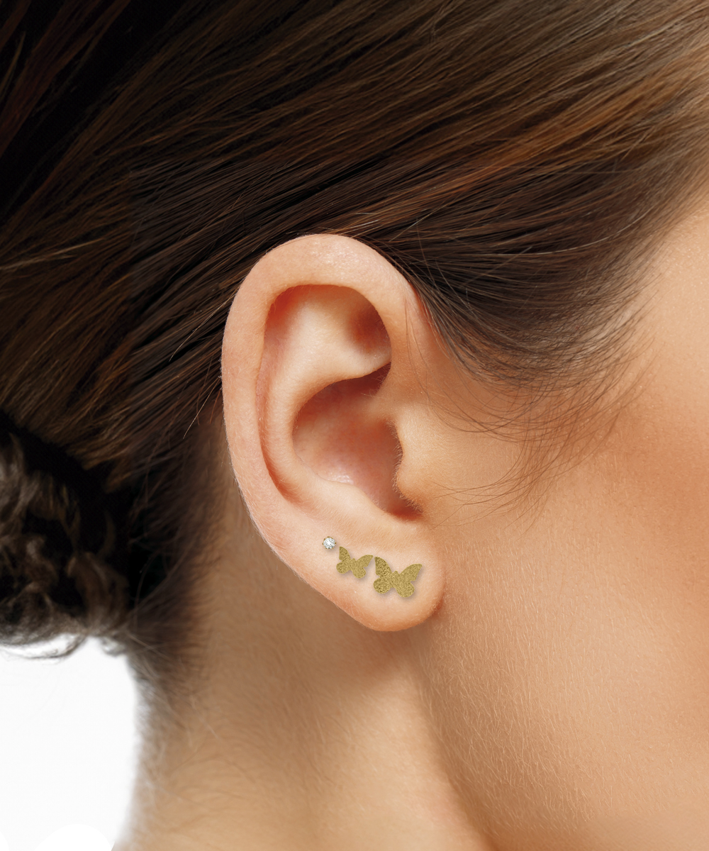 Conjunto de Brincos Borboleta Folheados a ouro com zircônia