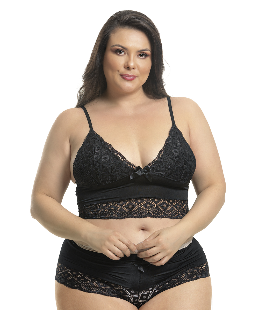 Conjunto (Top e caleçon) em poliamida e renda com elastano