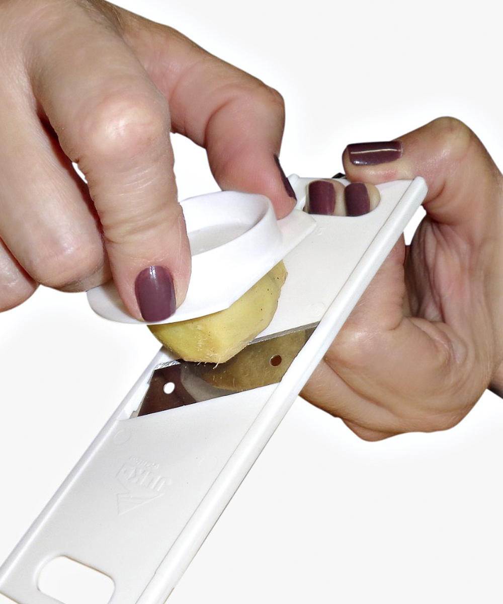 Fatiador e filetador de alimentos em plástico com lâmina em aço inox