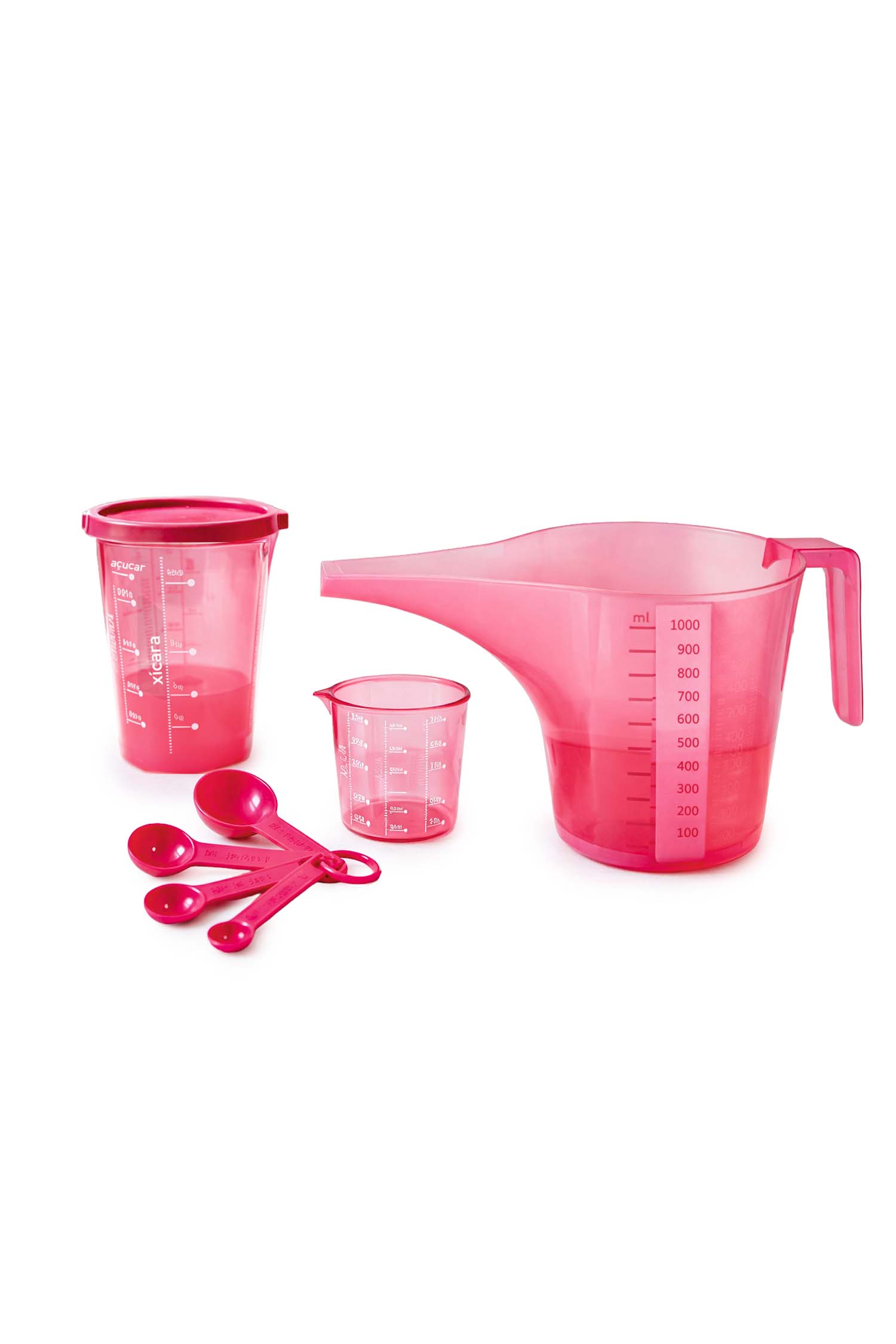 Contém: jarra funil, copo medidor com tampa, mini copo medidor e