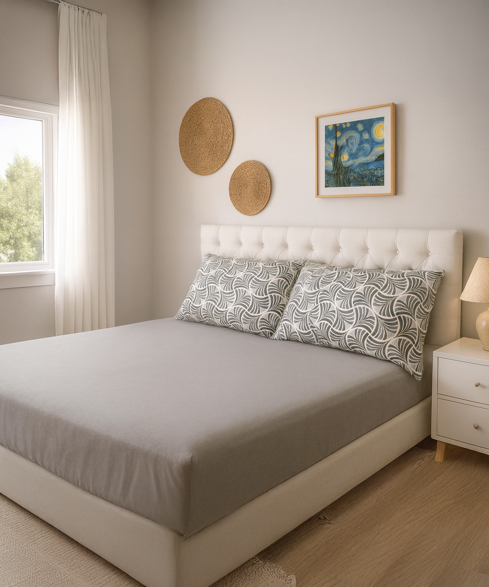 Med. lençol: 1,98x1,58x0,30 m/ porta-travesseiros: 70x50 cm