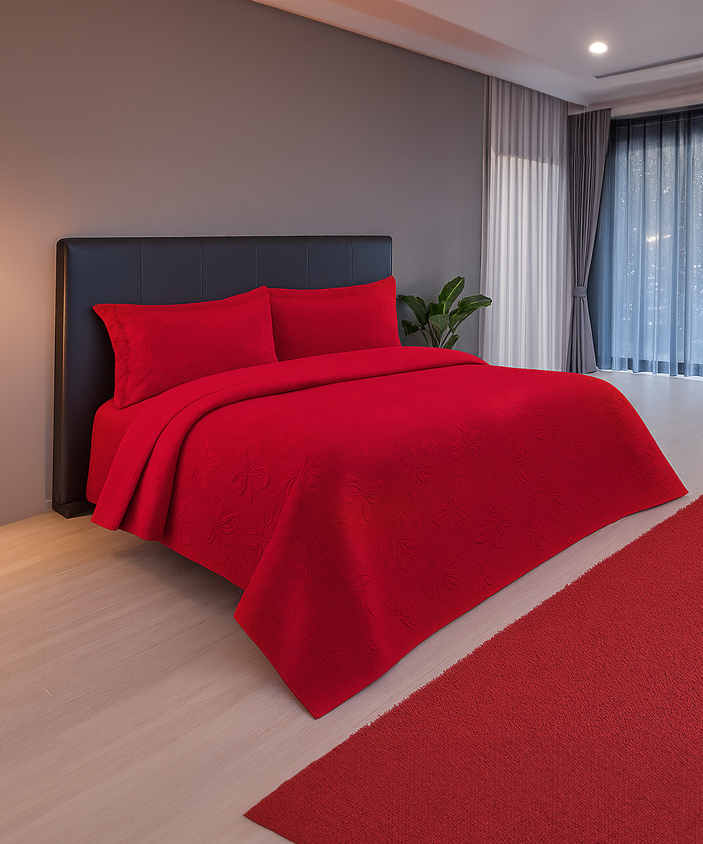 Med. colcha: 2,60x2,40 m/ porta-travesseiros: 70x50 cm