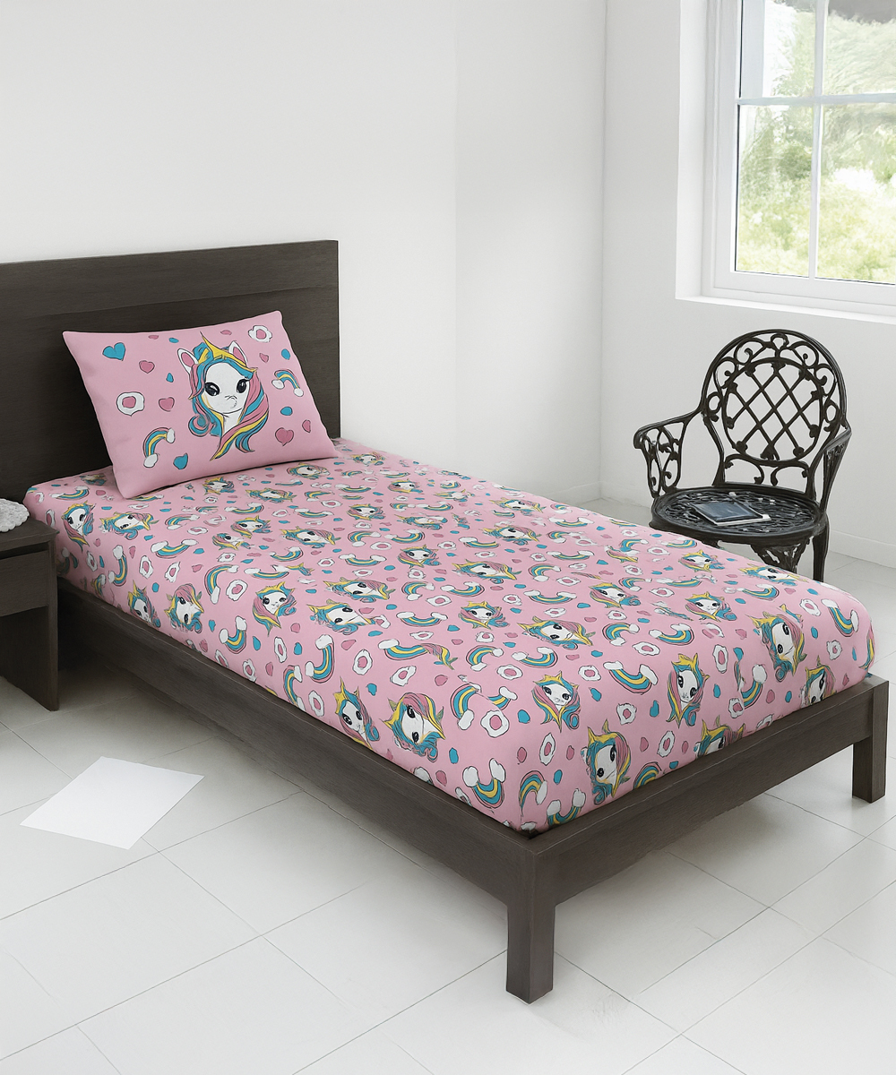 Jogo de cama Solteiro em malha Unicórnio