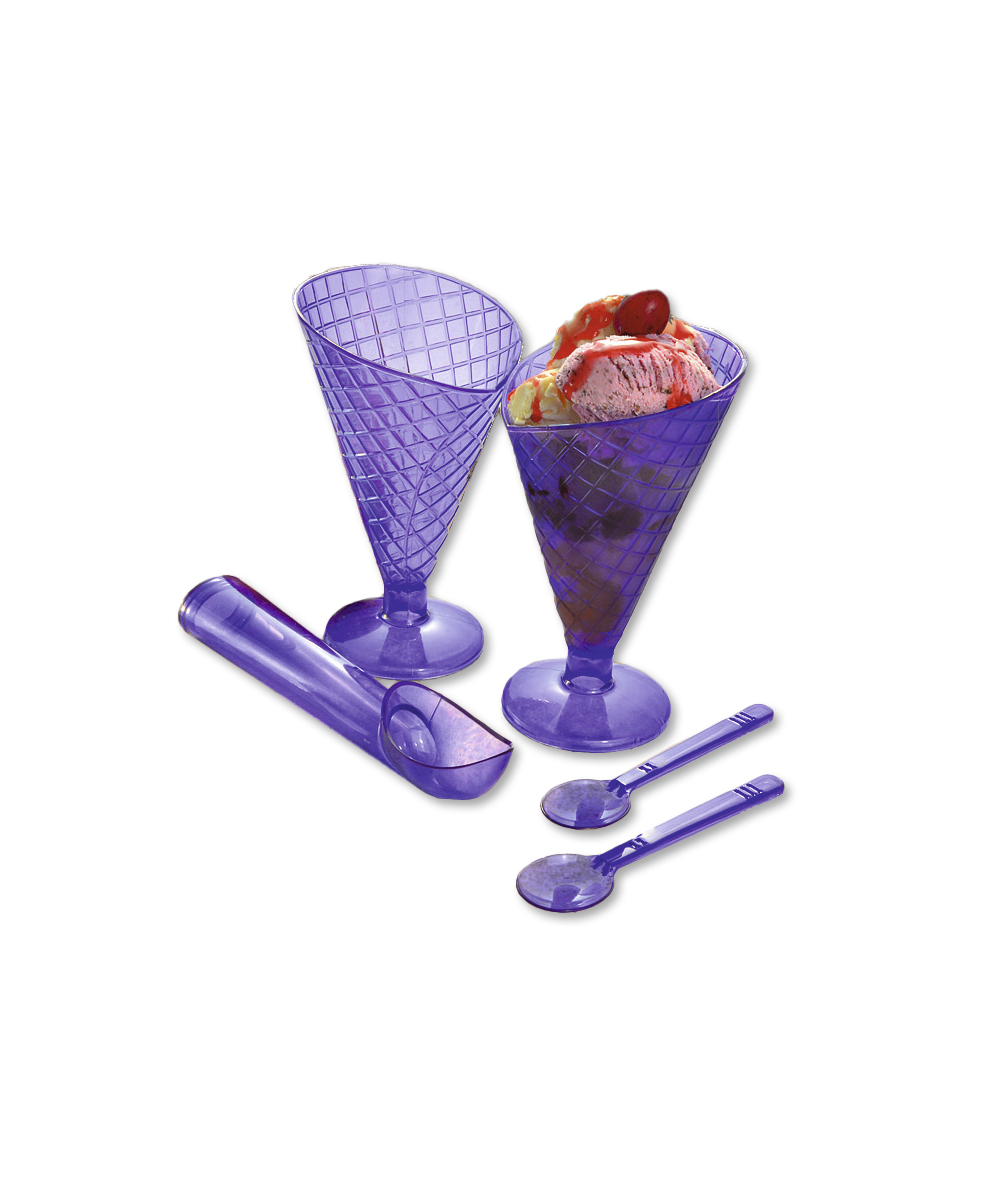Contém: 2 taças, 2 colheres e colher de sorvete