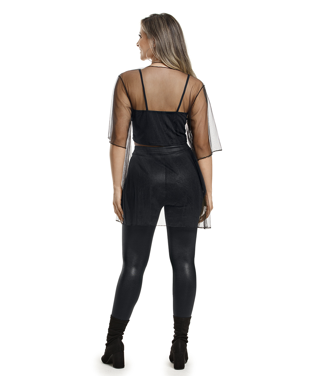 Quer dar um ar fashion ao look? Então a dica vai para esse kimono preto em tule, que além de moderno, é literalmente levinho e super estiloso.