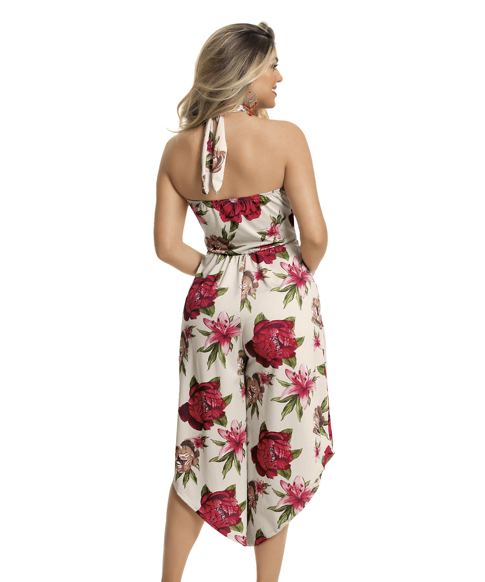 Macacão pantacourt em malha crepe