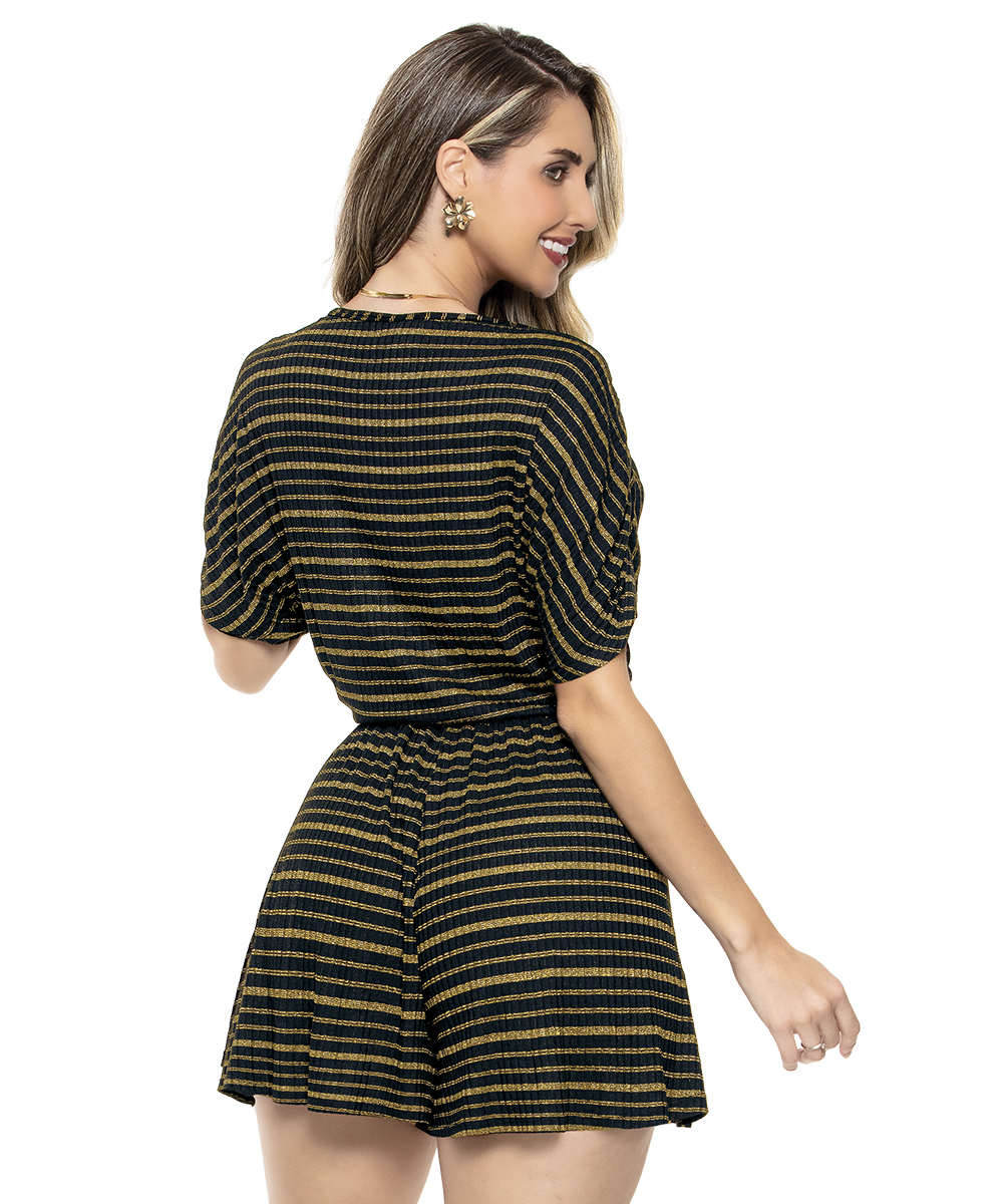 Macaquinho com transpasse em malha de viscose com fios dourados