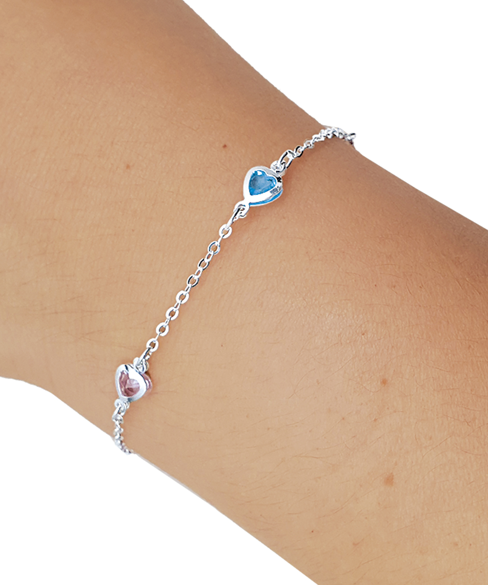 Pulseira Coração Colorido Folheada a prata com pedras de vidro