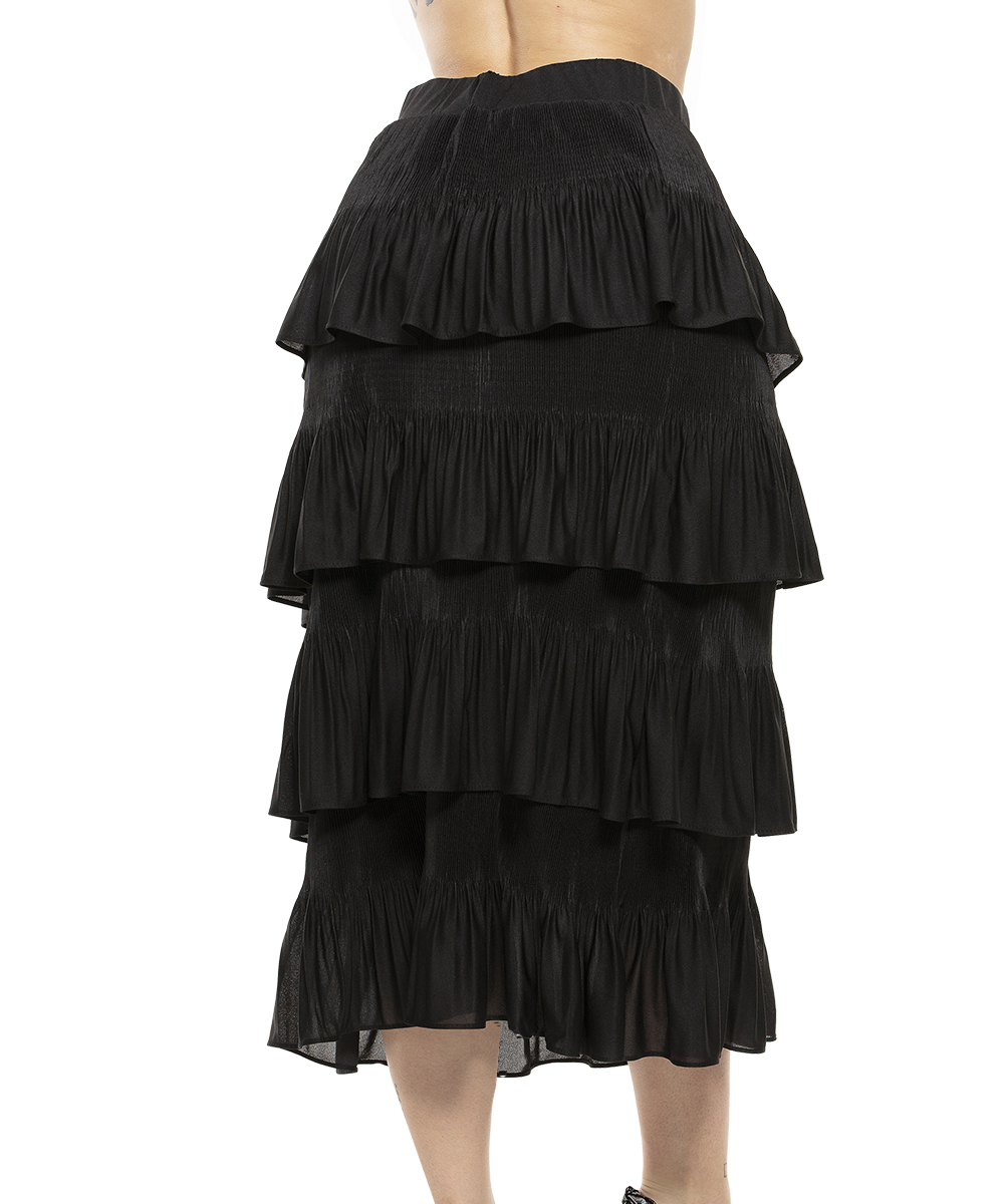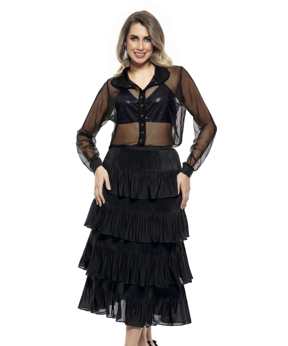 Saia com babado em malha crepe plissado