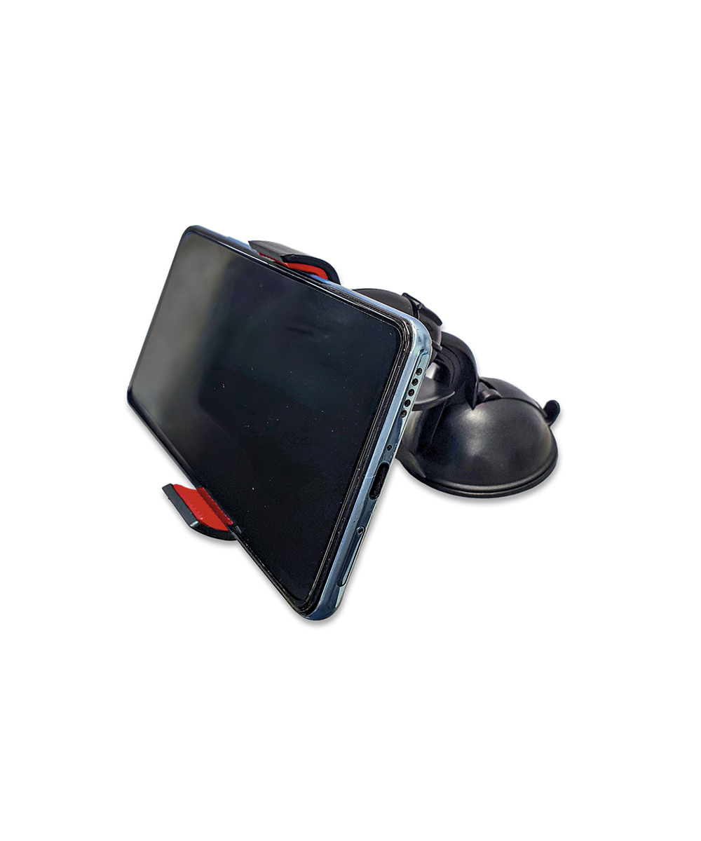 A sucção potente permite prender em bases planas como ferro, plástico, drywall