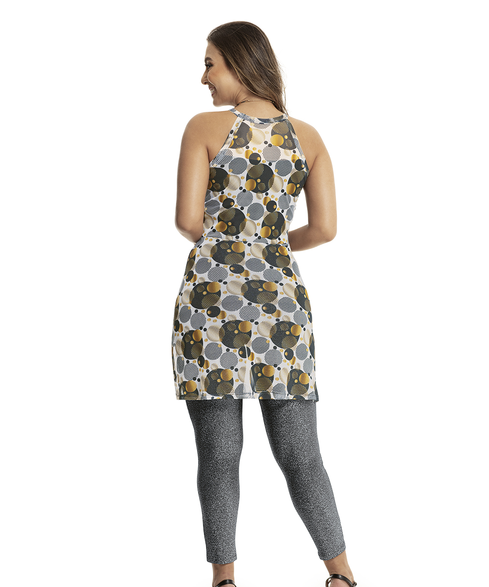 Tule com elastano. Toque confortável com leve transparência. Transmite