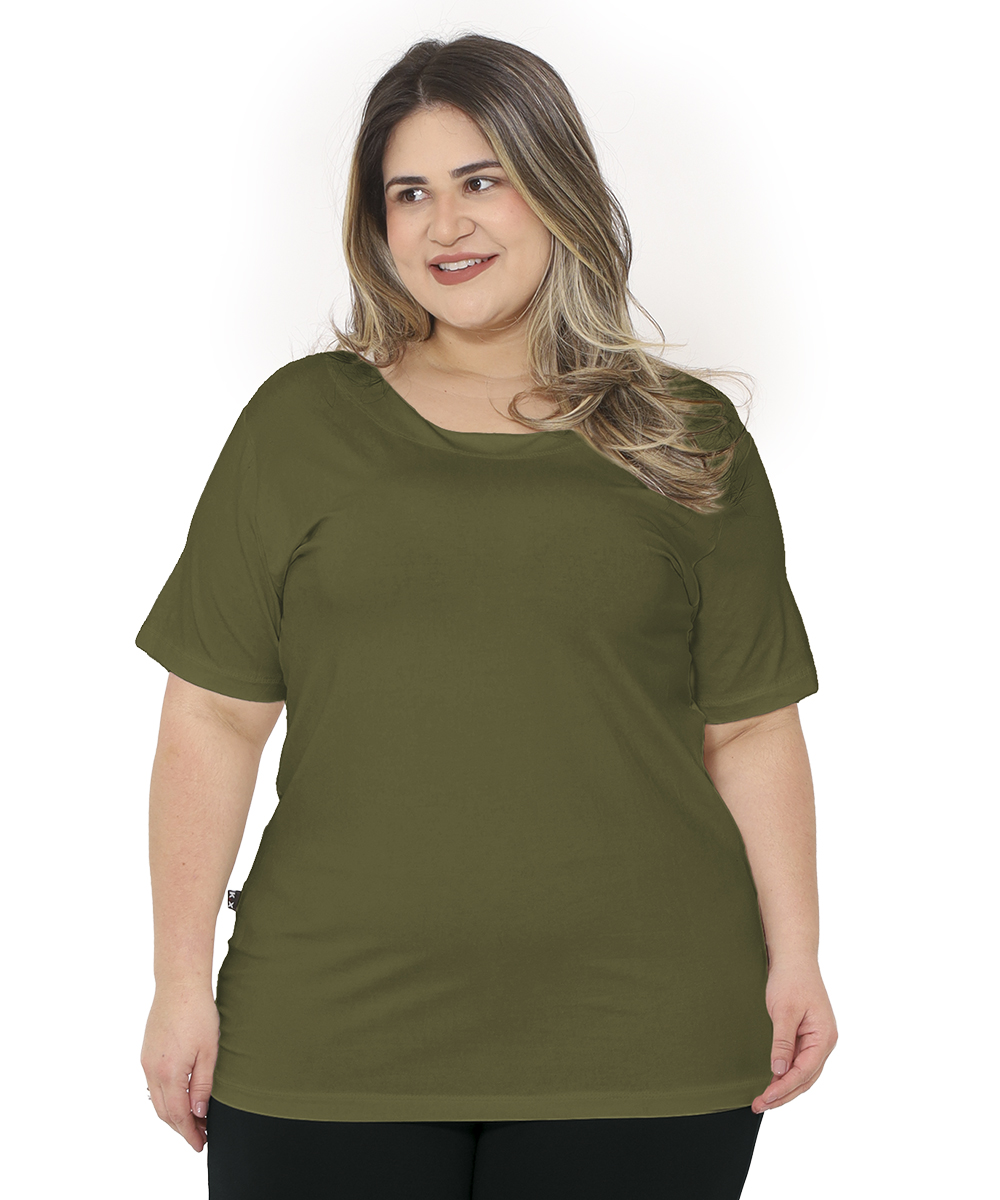 Viscose com elastano. Toque leve e macio. Ótimo caimento e muito conforto