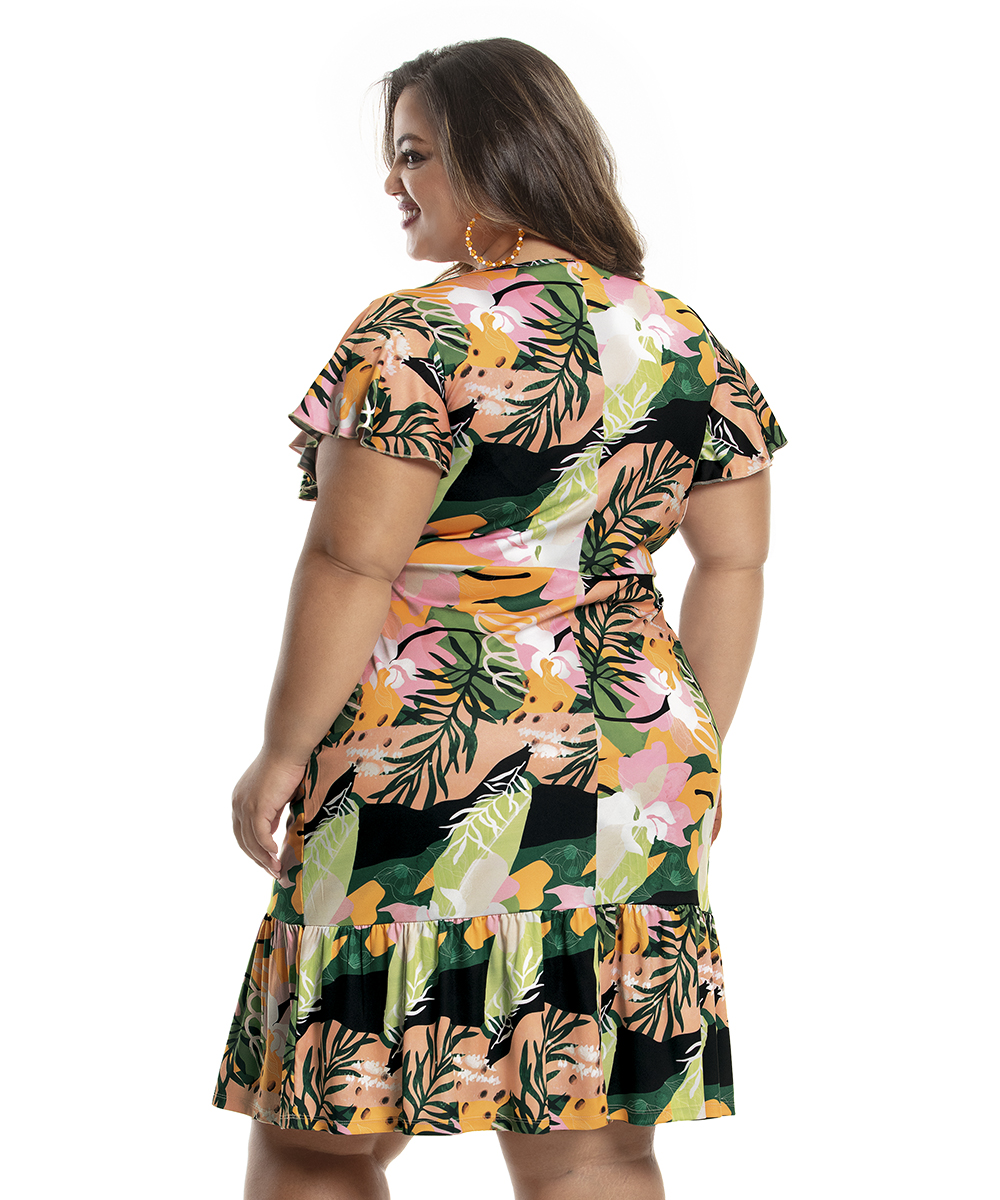 Arrase com esse vestido que esbanja alegria e estilo! Com estampa vibrante, decote transpassado e mangas godê, você estará pronta para brilhar em qualquer ocasião. A modelagem da saia reta com babados adiciona um toque de sofisticação, enquanto o comprimento clássico garante elegância e estilo ao look.