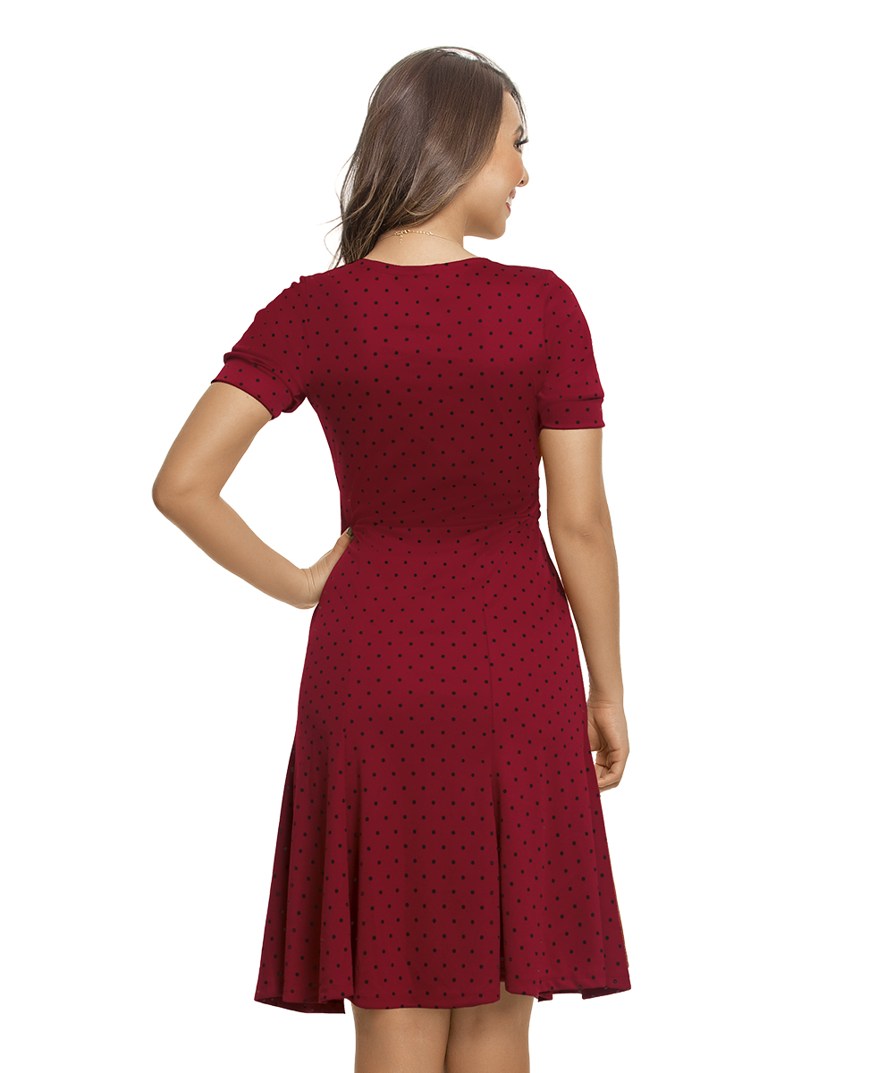 Feito em malha jersey com caimento fluído e toque agradável, possui decote diferenciado e transpassado, recorte na cintura e saia em evasê com recortes que dão movimento. Comprimento Clássico.