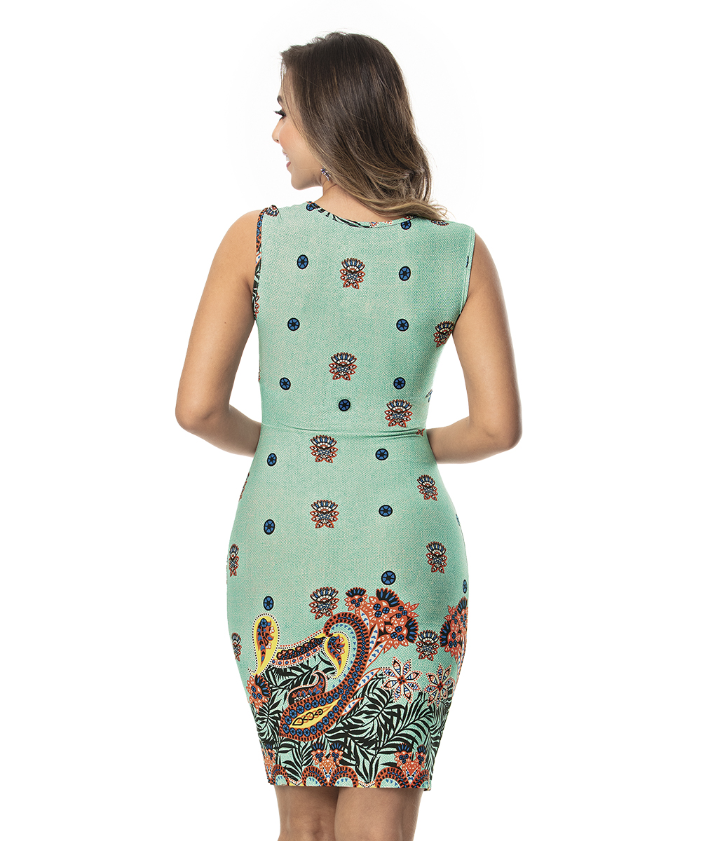 Feito em viscose e helanca, tem a modelagem da saia justa ao corpo com barrado estampado e comprimento médio. Perfeito para ocasiões casuais. Combine com acessórios e fique linda.
