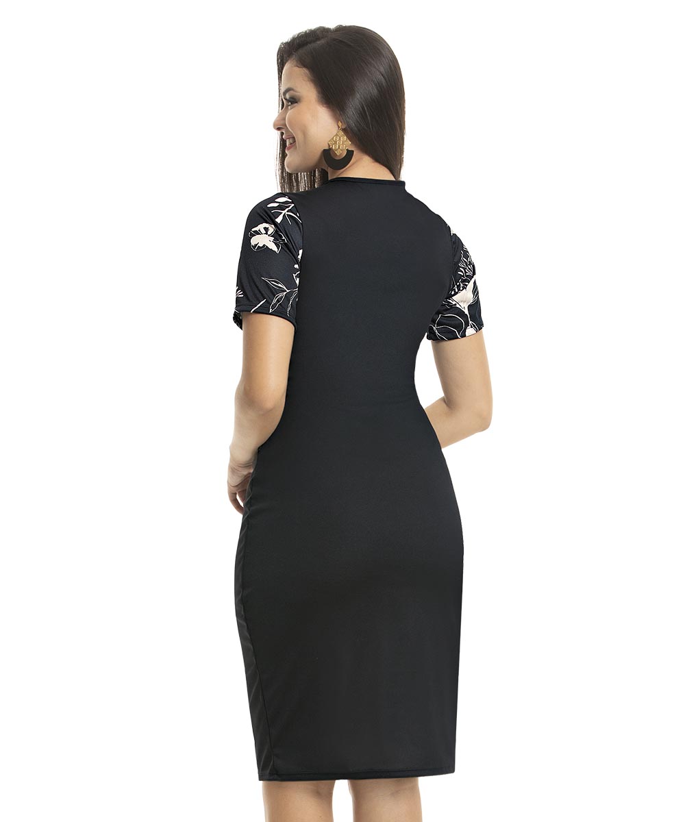 Vestido em helanca e jersey acetinado