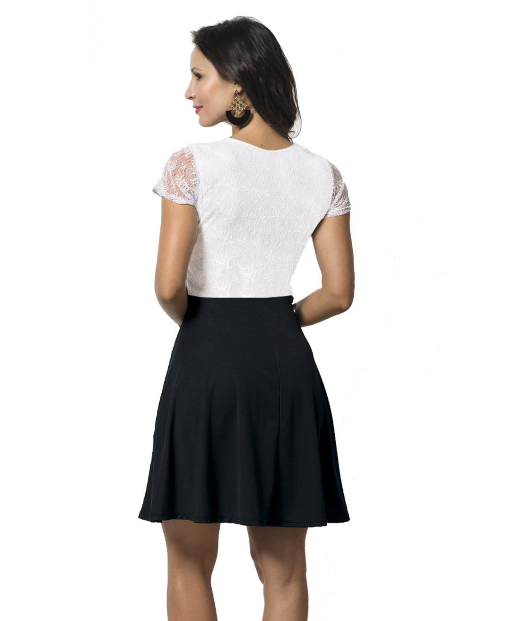 Vestido em helanca e renda