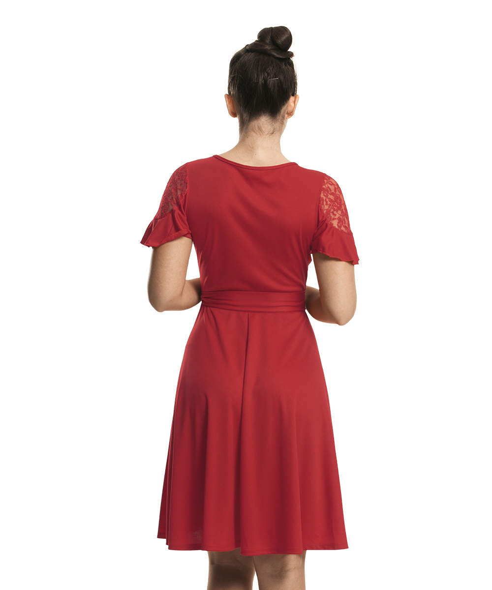 Vestido em helanca e renda