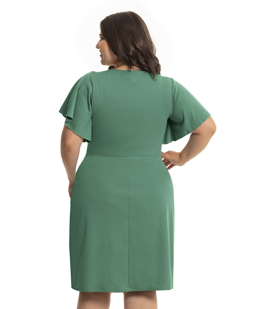 As mangas godê mais compridas, aplicadas nesse vestido de comprimento clássico, tornam a peça elegante e dá muita liberdade aos movimentos.