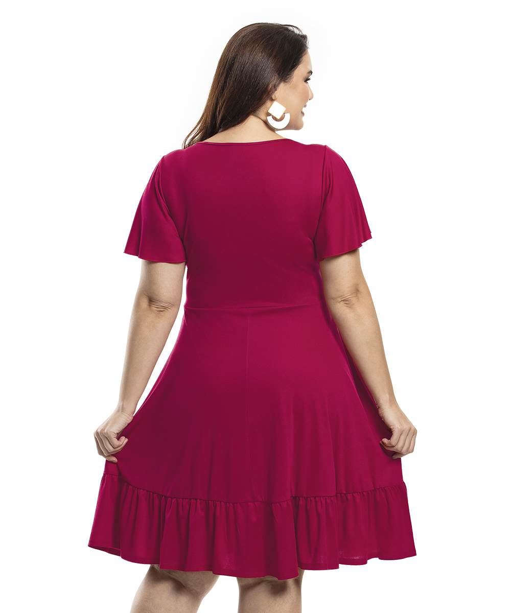 Vestido decote princesa, busto forrado com detalhe de anel e leve drapeado