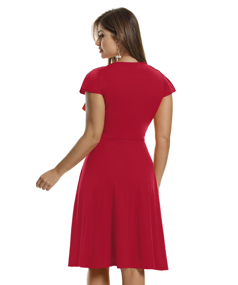 A combinação da saia soltinha com o decote quadrado e o babado no busto traz vida e movimento a esse maravilhoso vestido. Ideal para quem não quer passar despercebida pelo bom gosto e elegância.Vestido em helanca com decote quadrado e babado embutido em volta, mangas godê, modelagem da saia godê. Comprimento Médio.