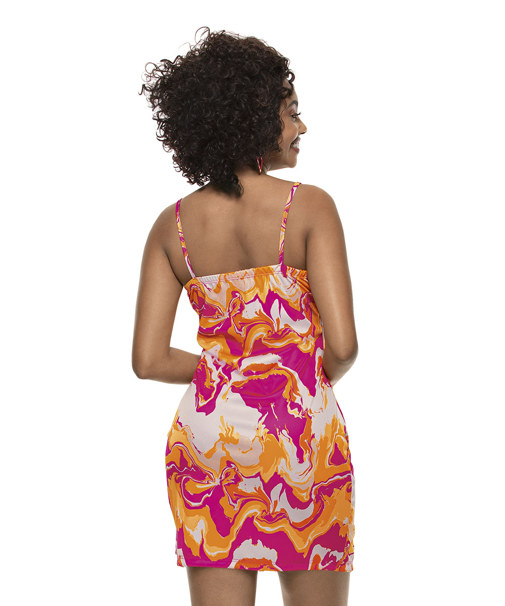 A estampa moderna e de cores contrastantes fazem desse vestido uma peça diferenciada e muito linda.