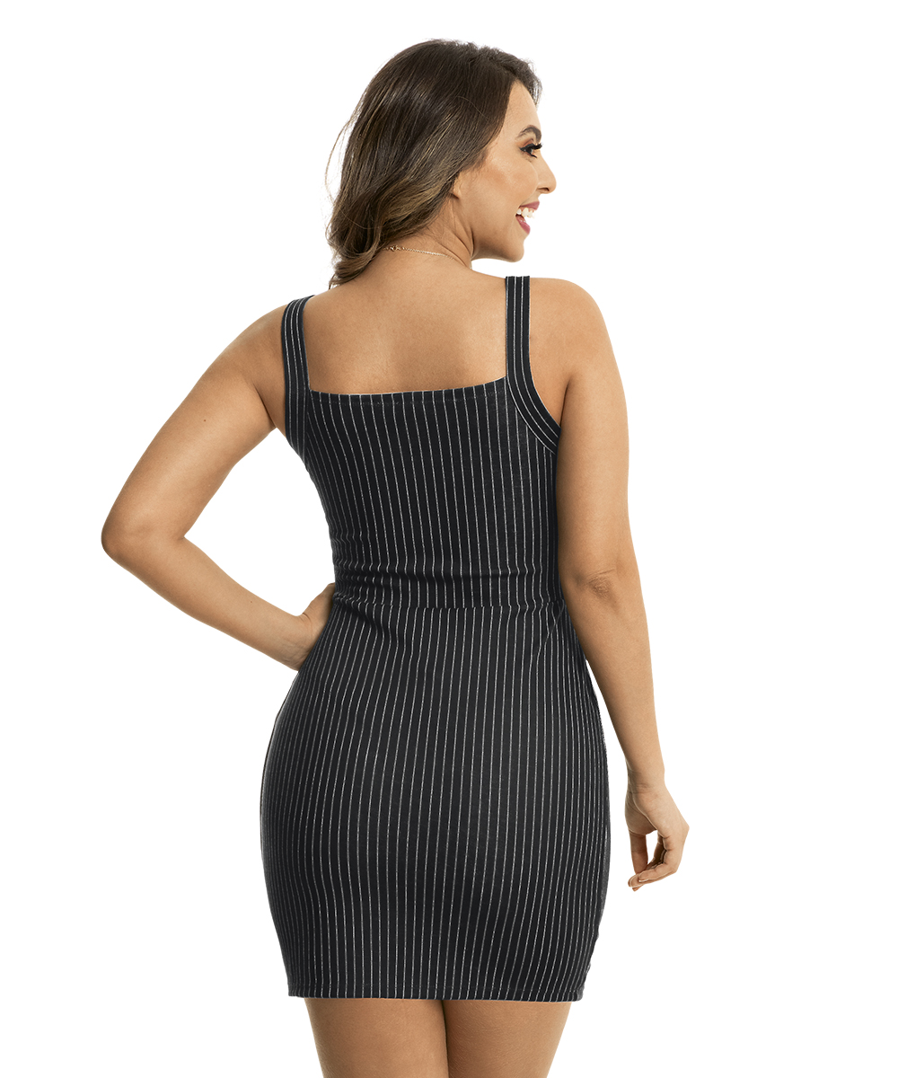 Vestido tubinho com alças largas e recorte na cintura que permite uma modelagem ajustada ao corpo.