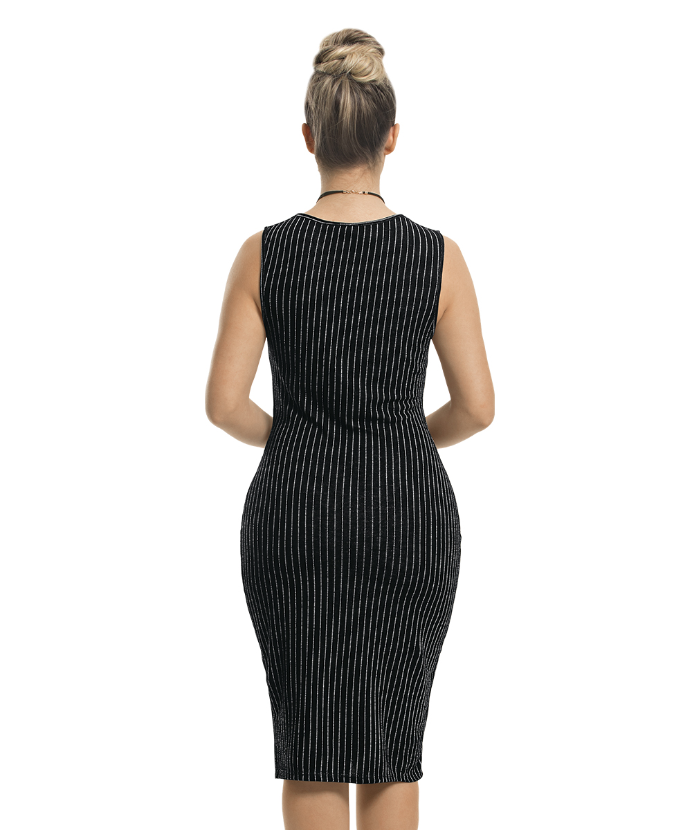 O vestido tubinho em malha jacquard risca de giz é um clássico. Elegante e confortável, essa é uma ótima opção para o trabalho. Para os dias de temperaturas mais amenas complete a produção com um lindo casaco.