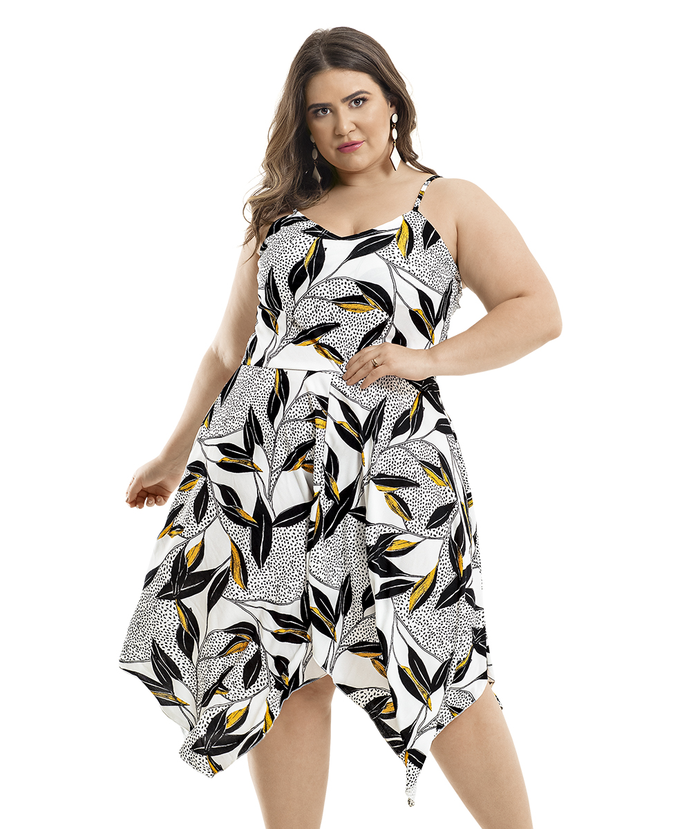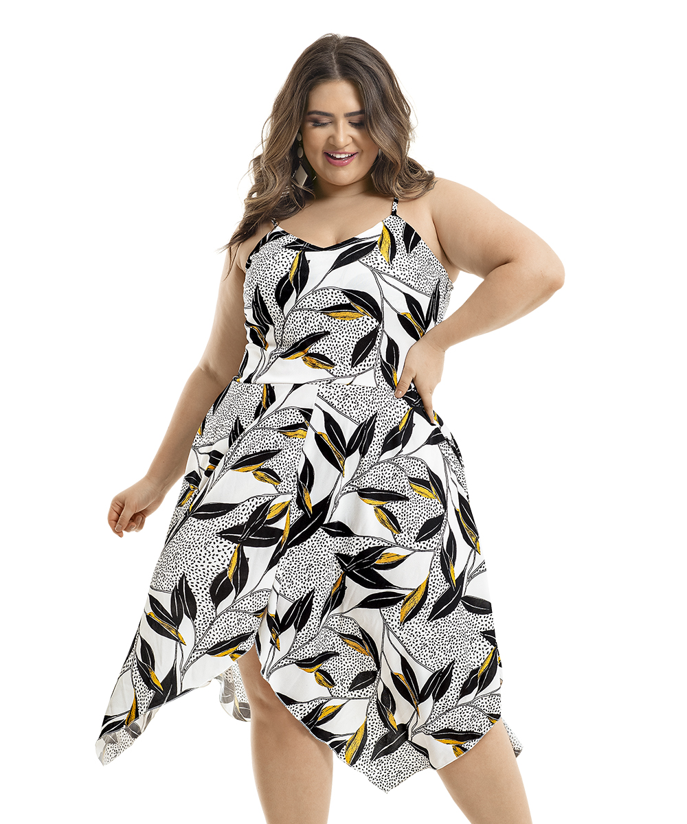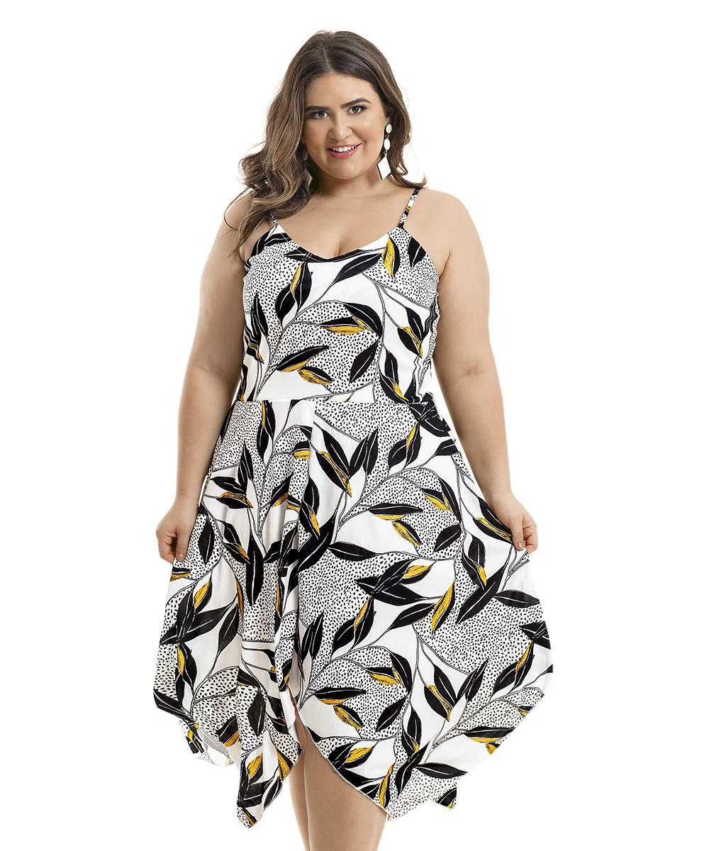 Sua saia é o diferencial nesse vestido super jovem. A saia assimétrica é moderna e fácil de combinar. Esse modelo em comprimento midi alonga a silhueta, além de elegante.Estampa em tons neutros e fácil de combinar.
