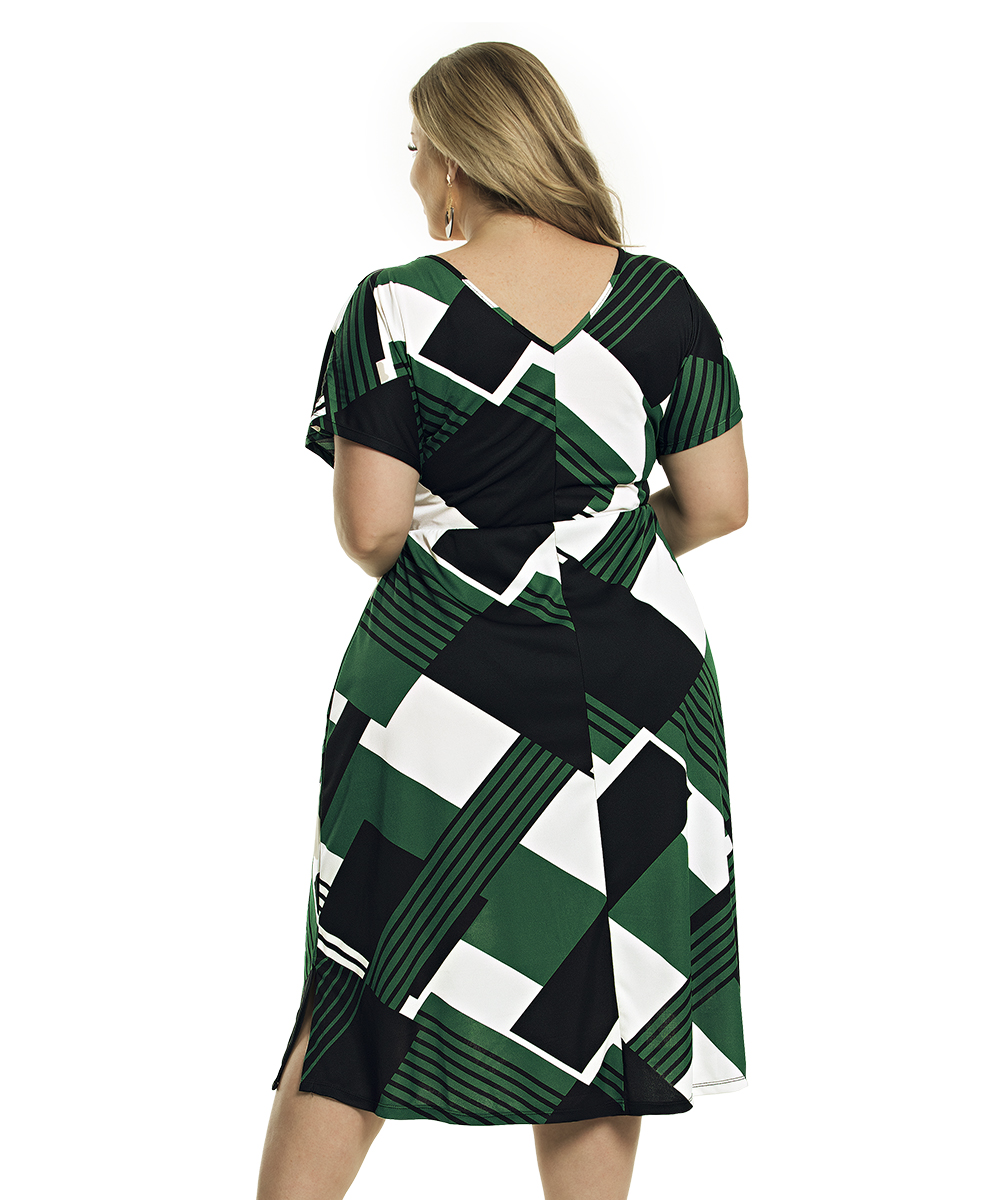 Lindo, confortável e moderno... A estampa geométrica e o modelo soltinho trazem aspecto descontraído a esse belo vestido. As fendas laterais e a amarração na cintura dão um toque especial e cheio de charme à peça!