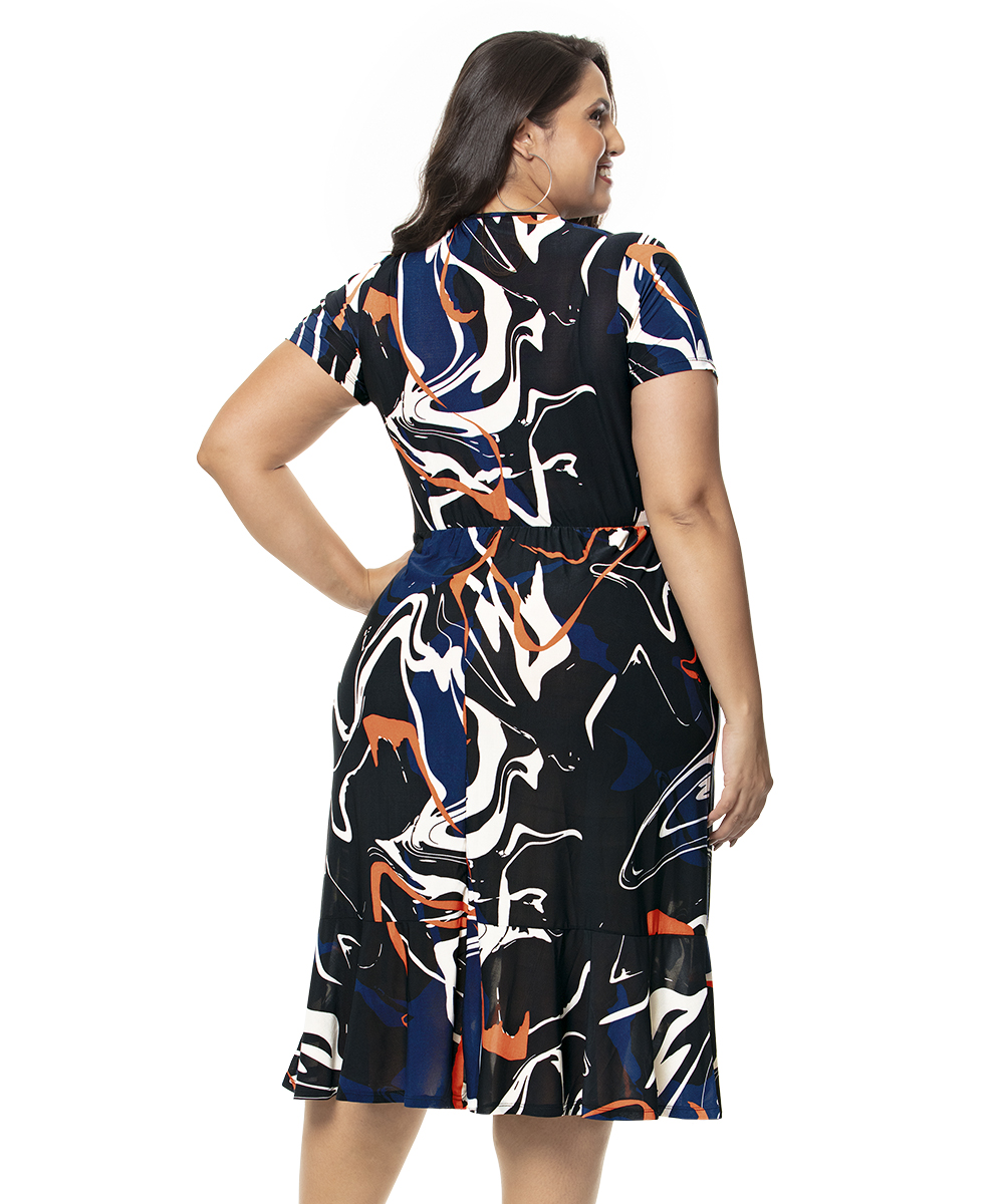 E o que dizer dessa estampa contemporânea e a combinação de cores que realçam o fundo preto da peça? Simplesmente um arraso! Moderno e leve, esse modelo em Jersey acetinado é perfeito para qualquer ocasião.