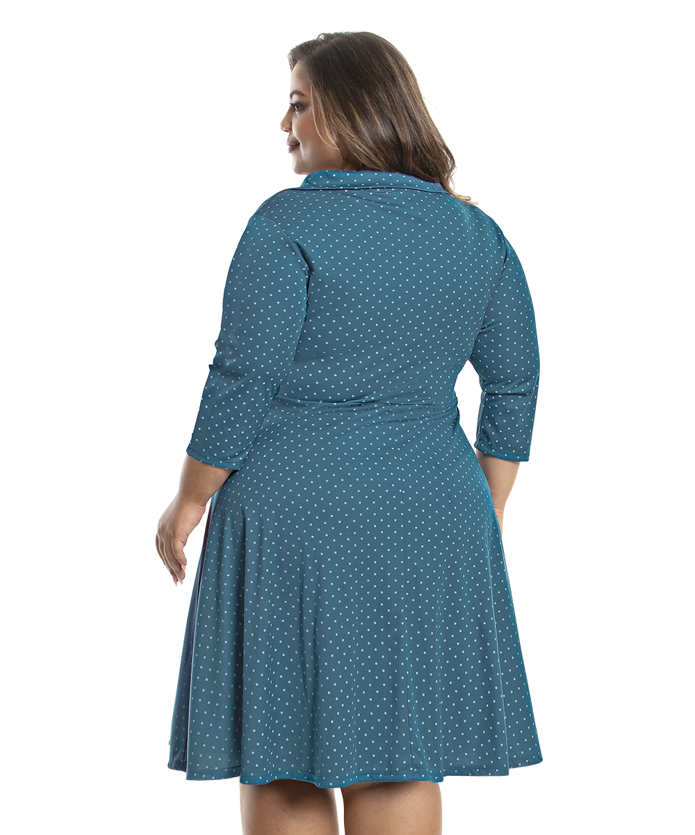 Destaque-se com a elegância atemporal deste vestido de estampa poá! Com sua gola no decote e mangas 3/4, ele é perfeito para quem busca um visual prático e charmoso. A faixa embutida na cintura permite um ajuste perfeito, realçando suas curvas com estilo.
