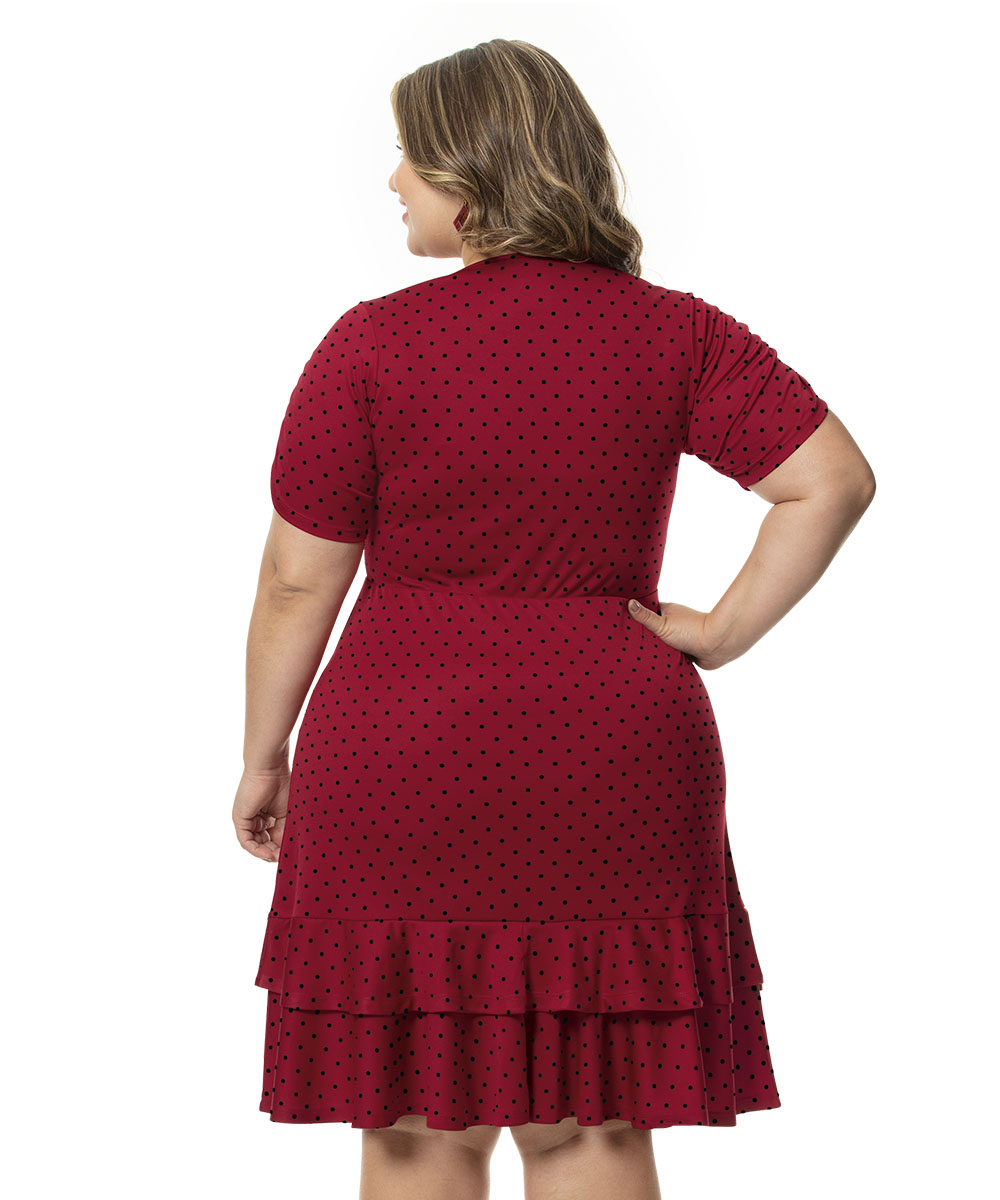 A cor vermelha é sem dúvida uma das cores mais clássicas e atemporais, que pode ser utilizada em diversas ocasiões. Neste modelo que tem o comprimento clássico, a estampa poá traz um toque divertido ao look, enquanto o vermelho, que é uma cor vibrante e marcante, transmite confiança e poder feminino.