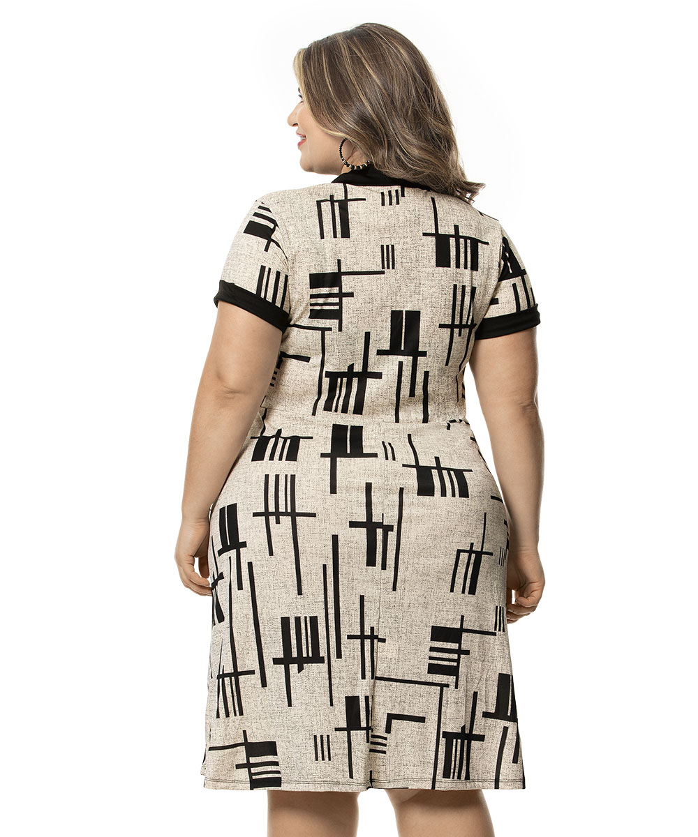 Os vestidos são sempre uma peça prática na hora de sair. Esse modelo vem com uma estampa moderna, que deixa o look elegante e feminino.