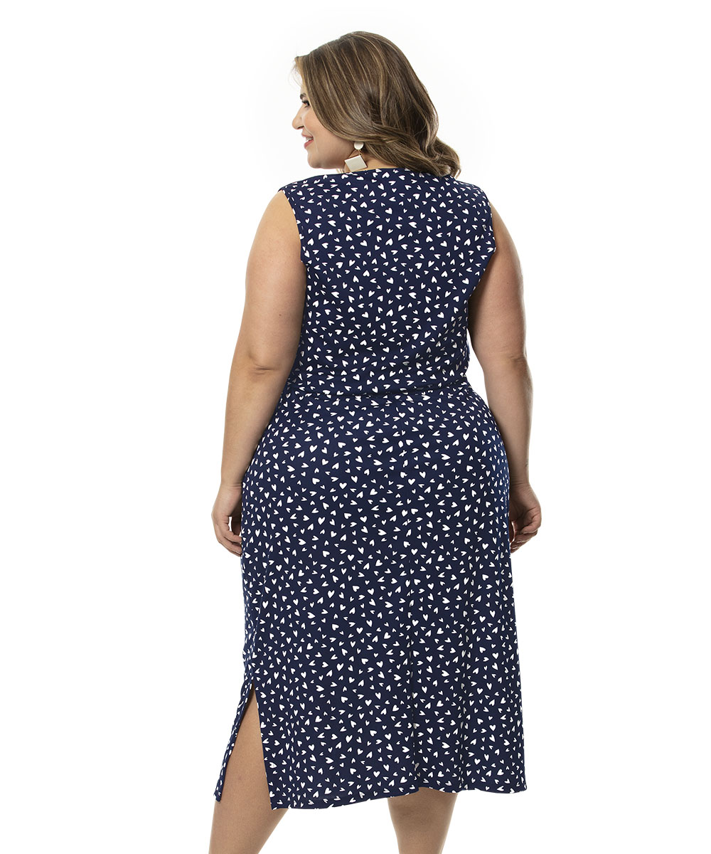 Com estampa de mini corações é uma excelente opção para quem procura um visual prático e romântico. A delicadeza da estampa e a elegância do jersey acetinado fazem desse vestido uma peça única e versátil.