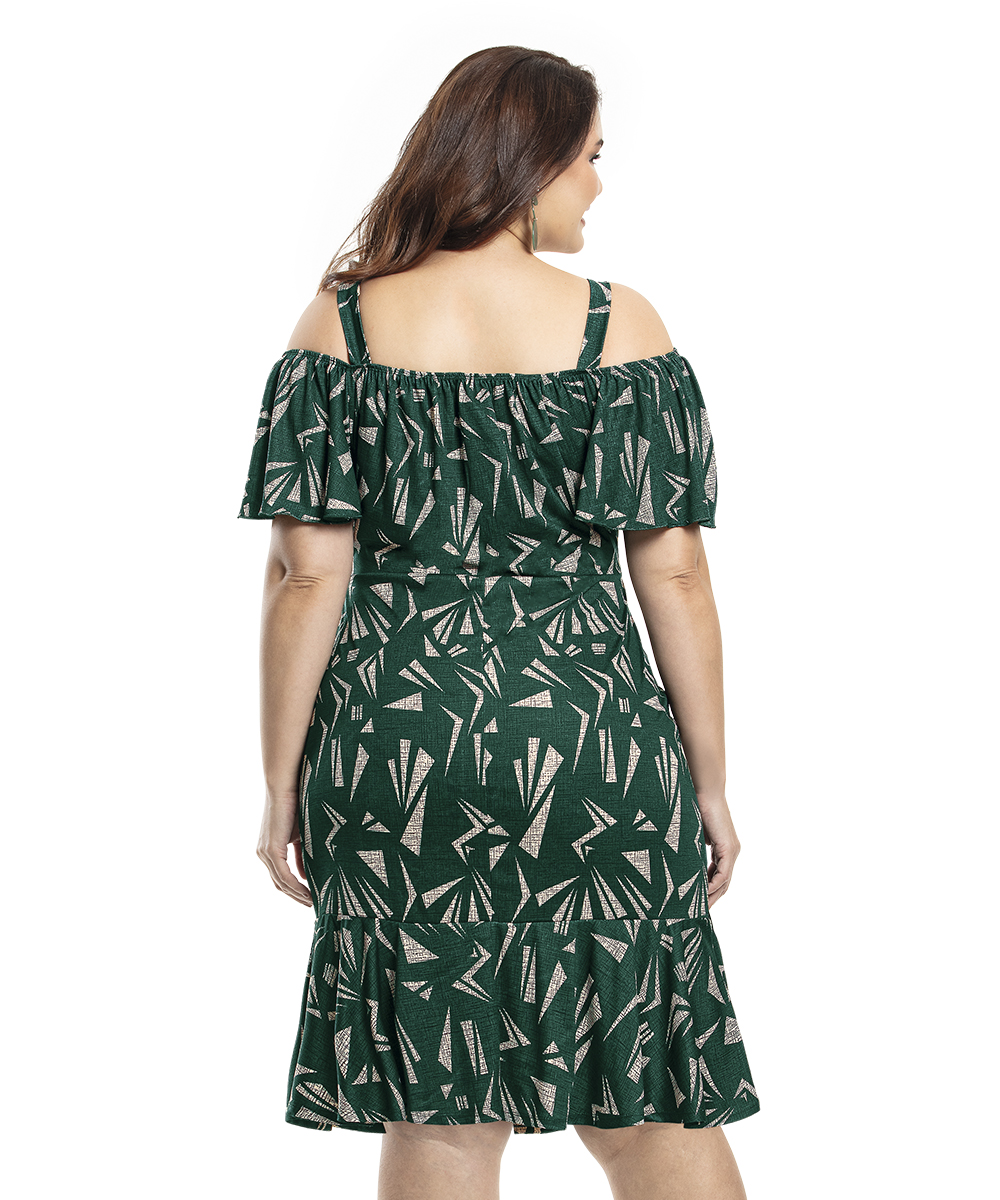 Vestido de alça, possui decote reto com elástico, mangas godês com ombro