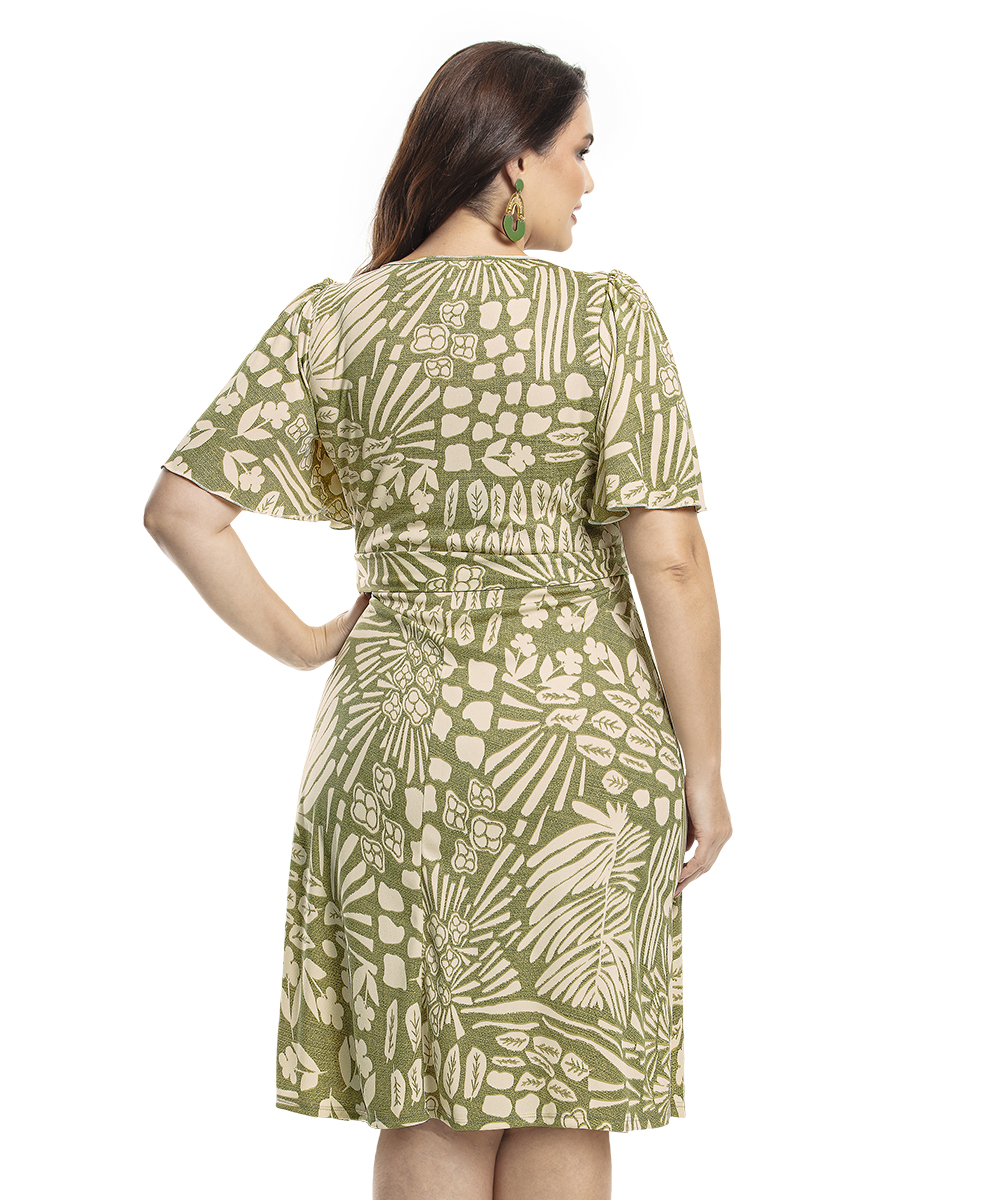 Vestido decote redondo com abertura em gota, mangas depois da dobra do