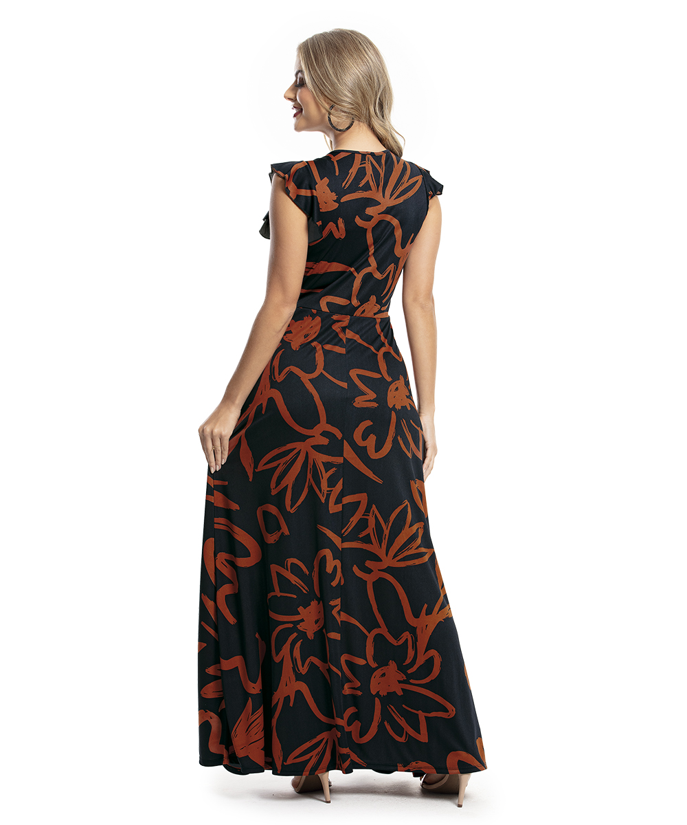 Vestido decote quadrado, busto forrado, mangas com babado delicado.