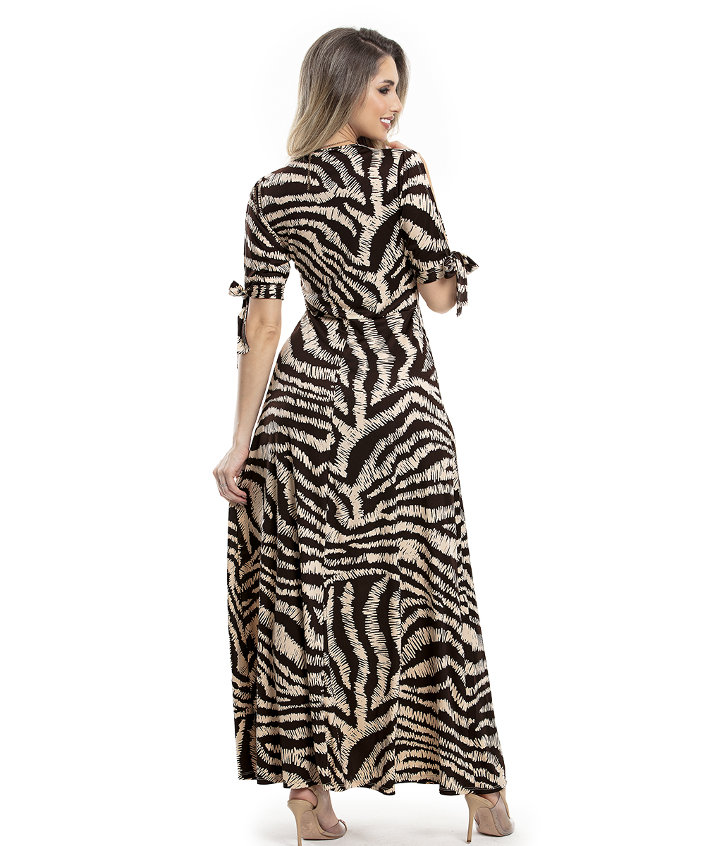 Vestido decote v, mangas na dobra do braço com abertura e faixa para