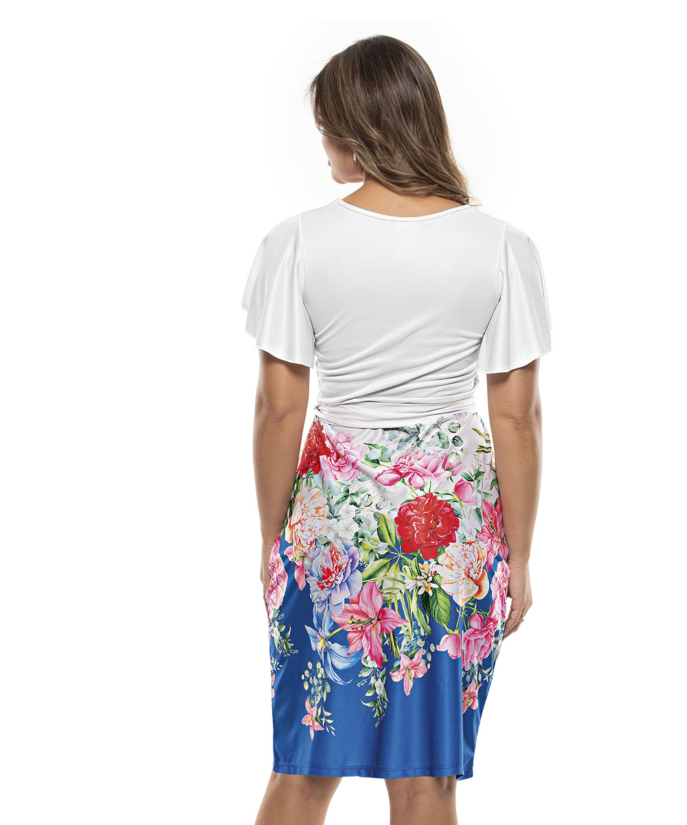 Você ama peças delicadas e com estampas que contrastam? Esse vestido no estilo clássico feito em jesey acetinado e mangas godê proporcionam um aspecto leve e jovial. Simplesmente uma graça!